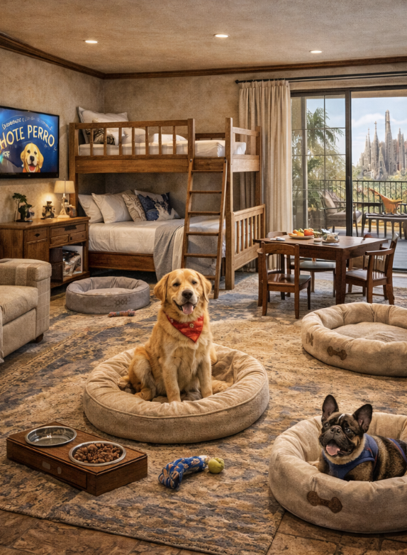Every room at Hotel Perro Barcelona reflects our deep understanding of what makes a truly dog-friendly space. We've eliminated the typical hotel stress points for pet parents—no breed restrictions, no size limits, and no judgment. Our rooms feature scratch-resistant flooring, washable fabrics, and strategically placed feeding areas that keep your pup's routine intact.